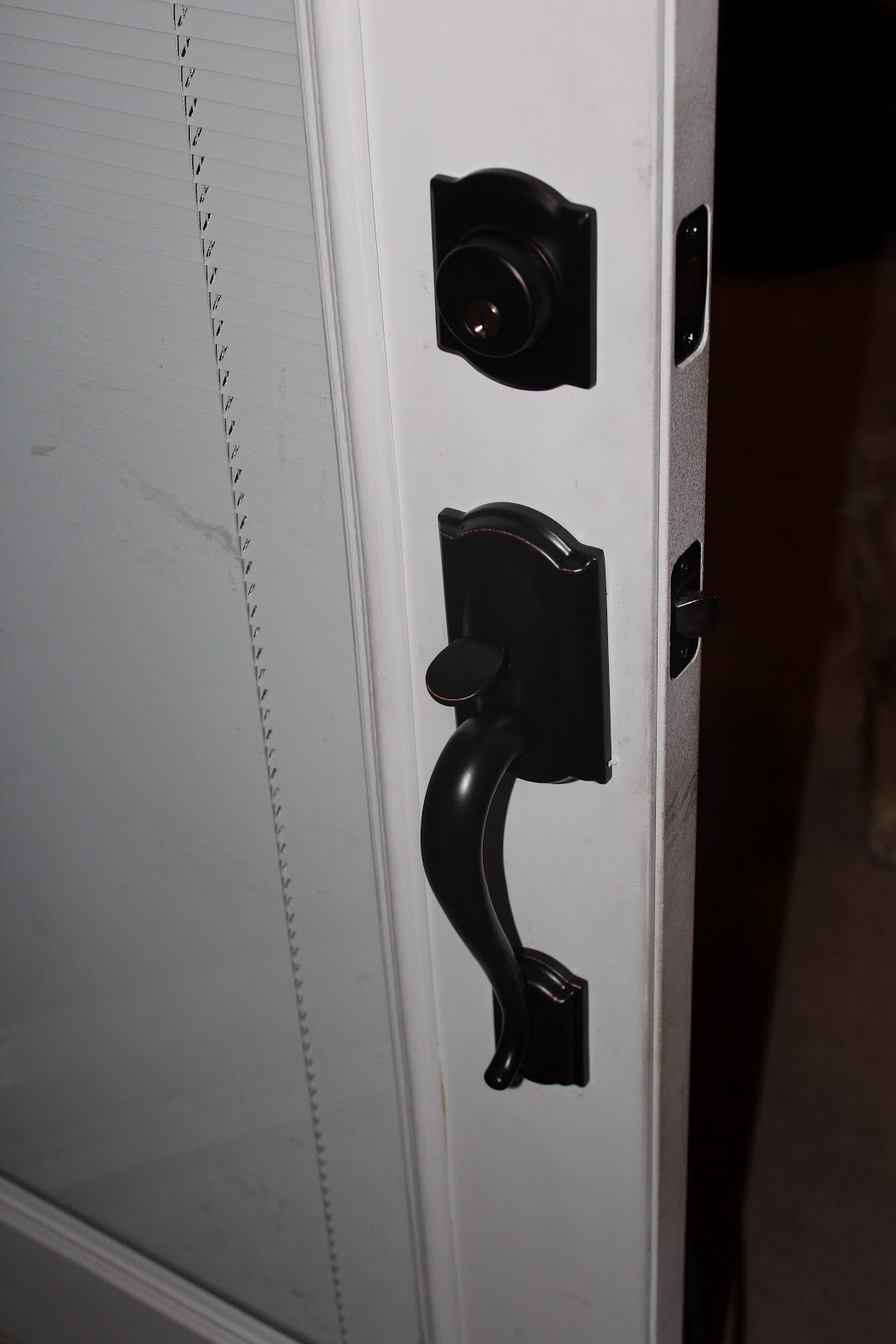 Once brunch was eaten and the dishes were cleared I puttered around the house, and thankfully got a call from my neighbor to help me fix our broken door handle. It looks great!
