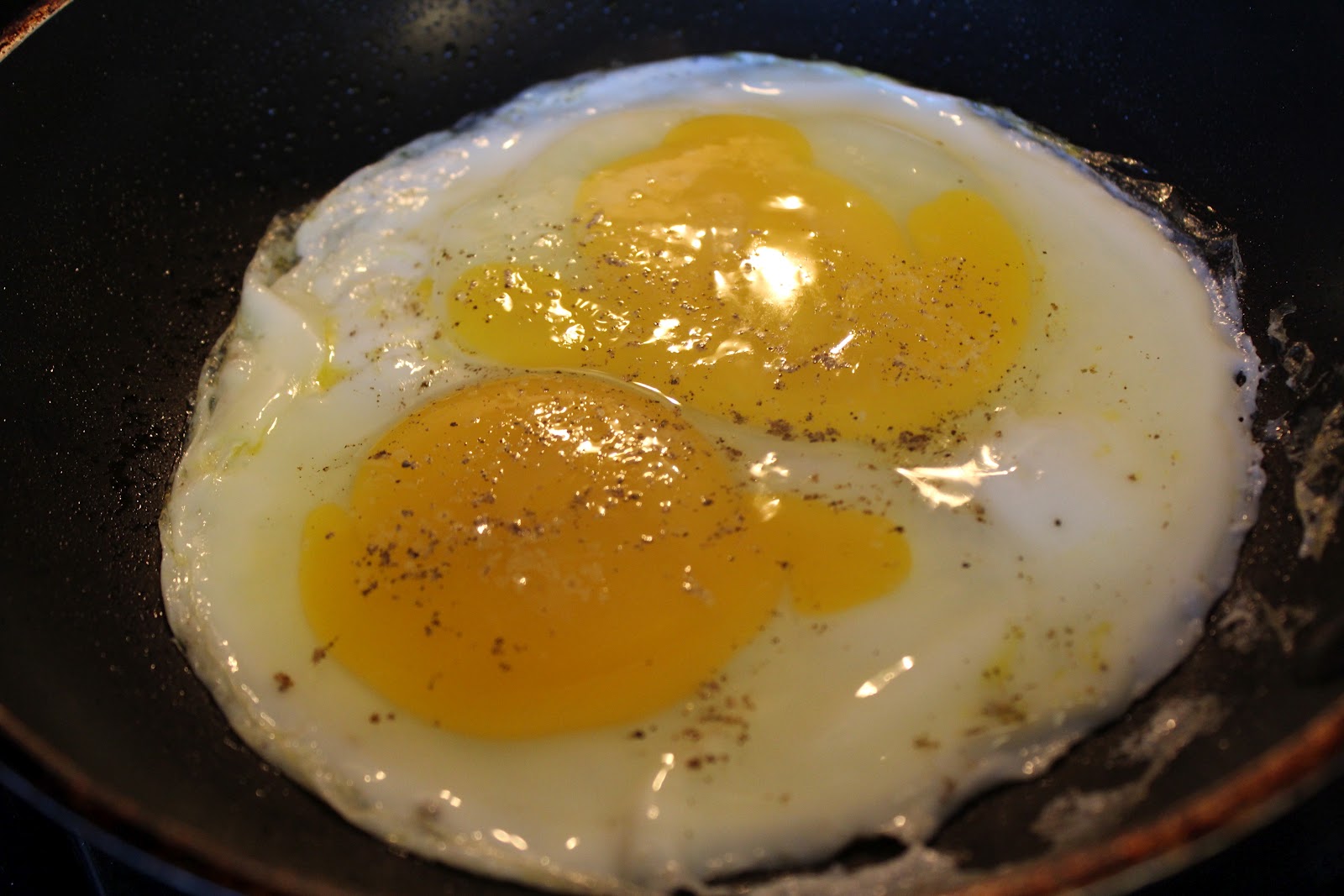 Add a pinch of kosher salt, freshly ground black pepper, and cook until almost done. Flip only once.