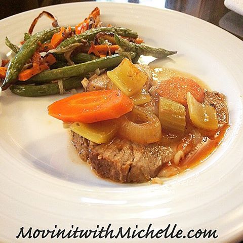 Tonight’s Sunday Supper was a simple pork roast in the crock poat with roasted veggies.
