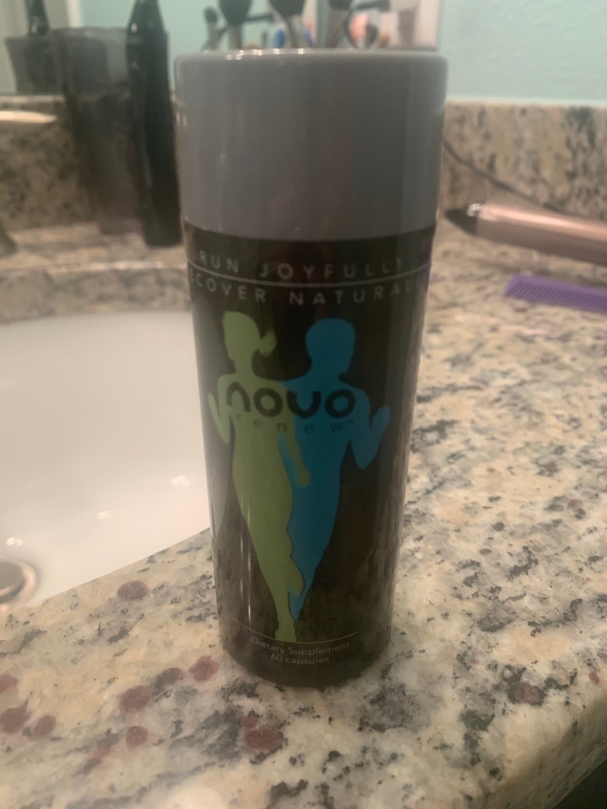 Fast forward 12 years, and I’ve now ran 3 full marathons (PR is 4:25) and 17 half marathons (PR is 2:00:11). Running is a NEED in my life, no longer a simple past time. As you can imagine, 30+ years of running has taken it’s toll on my knees. This last couple of years especially. I have tried all the glucosamine supplements, NSAIDS, and everything in between with no relief. I had honestly contemplated giving up distance running which just the thought of it broke my heart. So when Tad from NOVO Renew reached out to me, asking if I wanted to try his all natural supplements for pain relief and anti-inflammatory issues, I thought, “Why not?”